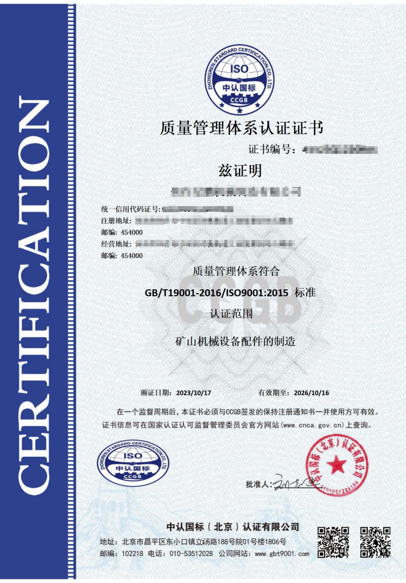 ISO9001質量管理體系認證